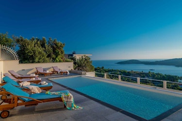 zur VillaHouse with a view. Eine moderne Luxusvilla - away from it all inmitten von Olivenhainen und Blick über die kroatische Inselwelt.