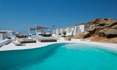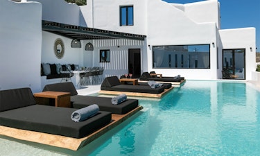 zum HotelLuxuriöser Ferienstandort für Freunde des Psarou-Beach