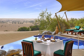 Dubai ist bekannt als Metropole der Superlative, die insbesondere mit himmelhohen Wolkenkratzern, gigantischen Einkaufszentren und luxuriösen Strandresorts erstaunt. Doch das Arabische Emirat glänzt ebenso mit einer ursprünglichen Facette in den Weiten der goldfarbenen Wüste, in der Sie die romantische Lodge Al Maha wie eine verträumte Fata Morgana inmitten einer grünen Oase erwartet. Das Wüstenhotel Al Maha liegt am Dubai Desert Conservation Reserve, dessen Dünen, Frischwasserlagunen und Vegetation ein geschütztes Habitat für faszinierende Tiere bietet, die sich an das Leben in der heißen Sandwelt angepasst haben. Dies ist der perfekten Ort, um bei Safaris - wahlweise im Geländewagen oder auf dem schaukelnden Kamelrücken - den Spuren von Wüstenluchsen, Sandfüchsen und Oryxantilopen zu folgen. Während Ihres Aufenthalts im Al Maha erhalten Sie darüber hinaus Einblicke in die uralten arabischen Jagdkünste, indem Sie dabei zusehen, wie Falkner in tiefer Verbindung mit ihren Greifvögeln agieren oder Sie selbst das Schießen mit einem traditionellen Bogen ausprobieren. Anschließend waschen Sie sich mit einem Sprung in den Hotelpool oder in Ihr privates Tauchbecken den Sand von Ihrer Haut. Die authentisch-orientalischen Suiten des Al Maha verteilen sich Beduinenzelten gleich zwischen wogenden Palmen und üppigen Sträuchern. Das noble Interieur präsentiert sich mit dunklem Holzmobiliar, schimmernden Stoffen und bunten Glaslampen. Ihr Refugium wird komplettiert durch ein edles mit Marmor verkleidetes Bad, das mit einer großzügigen Badewanne und einer ebenerdigen Regendusche bestückt ist. Im Restaurant Al Diwaan ist nicht nur die Küche exquisit, sondern auch die Aussicht über die endlosen Sandebenen, auf denen Herden von Gazellen umherstreifen. Eine besondere kulinarische Erfahrung sammeln Sie bei einem intimen Abendessen in der Wüste, bei dem Sie im wärmenden Schein von Fackeln auf weichen Teppichen und Kissen mit mittelöstlichen Delikatessen verwöhnt werden.