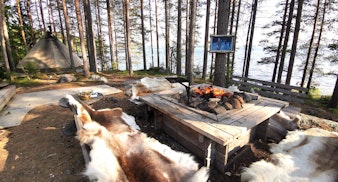 Abwechselnd gemächlich und tosend bahnt sich der Råneälven seinen Weg durch die endlosen Arktiswälder des äußeren Nordens Schwedens. Der Strom verwandelt die arktische Welt in eine wildromantische Fluss- und Seenlandschaft, deren Schönheit Sie im naturverbundenen Aurora Safari Camp ohne Grenzen genießen. Die Zeltlodge ist die erste ihrer Art im schwedischen Lappland und liegt im Schutz eines Nadelwaldes am Ufer eines Sees, der die meiste Zeit des Jahres gefroren ist. Hier haben Sie die einmalige Gelegenheit, mit einem Schneemobil oder Hundeschlitten, der von kräftigen Huskys gezogen wird, über die Eisfläche des gefrorenen Stroms zu gleiten. Auch mehrtägige Safaris in die Wildnis sind von hier aus möglich. Die vier Unterkünfte sind im traditionellen Stil der Tipi-Zelte des indigenen lappländischen Volkes der Samen gehalten. Ein knisternder Holzofen wärmt das Innere der komfortablen Safari-Zelte, die Ihnen ein behagliches Refugium im Schnee bieten. Zum Abendessen treffen Sie sich mit den anderen Gästen an der von afrikanischen Bomas inspirierten Feuerstelle im Freien. Hier werden Ihnen skandinavische Speisen gereicht, die über dem offenen Feuer zubereitet wurden.