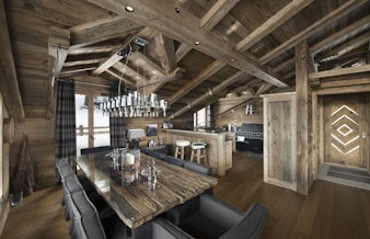 An der Flanke eines Berges erbaut und den Bergmassiven von Vanoise zugewandt, vereint das Chalet M die warme, freundliche Atmosphäre traditioneller savoyischer Häuser und das gehobene Image von Courchevel. Ideal im Zentrum des Dorfes und in unmittelbarer Nähe zu den Pisten gelegen, profitiert es trotzdem von einer ruhigen Umgebung. Umgeben von Bergen mit imposanten Bergpinienwäldern fügt sich das Chalet M mit seiner traditionellen Architektur unauffällig in die Landschaft ein. Die Panoramen, die von den großen französischen Fenstern des Anwesens bewundert werden können, suchen ihresgleichen. Die Architektur in dieser traditionell authentischen Umgebung von 270 m², die vollständig aus altem Holz besteht, ist von den Traditionen der Savoie inspiriert und ergänzt sie mit raffinierten Dekorationen. Im Einklang mit der warmen Atmosphäre, die das Gerüst des Chalets und das unter den Füßen knarrende Holz erzeugen, wurden hauptsächlich natürliche Materialien aus der Umgebung verwendet, um dem Anwesen eine Note von Gemütlichkeit und Eleganz zu verleihen. Dieses Streben nach einem zarten, natürlichen Wohlbefinden zeigt sich gleichermaßen in jedem der fünf Schlafzimmer des Chalet M, die alle mit eigenem Bad ausgestattet sind. Ohne überflüssige Elemente, lassen diese Räume das Holz in seiner ganzen Schönheit gelten und schaffen so ein Ambiente von Sanftheit und Behaglichkeit.