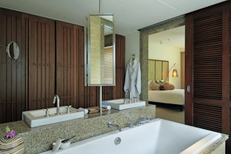 Das weitläufige Resort Constance Ephelia Seychelles liegt ganz exklusiv und malerisch schön auf einer privaten Halbinsel an der Westküste der Hauptinsel Mahé. Nur knapp 40min vom internationalen Flughafen und der Hauptstadt Victoria entfernt finden Sie hier eine ursprüngliche Idylle mit Blick auf den Port-Launay-Marine-Nationalpark. In unmittelbarer Nähe des Resorts erreichen Sie spektakuläre Ausflugsziele wie den magischen Sauzier-Wasserfall oder den höchsten Berg der Insel, den 905m hohen Morne Seychellois. Versteckt inmitten von Mangrovenwäldern und uraltem Baumbestand liegen insgesamt 313 großzügige Zimmer, Suiten und Villen. In elf Restaurants und Bars genießen Sie einheimische und internationale Gerichte direkt am Strand oder inmitten der exotisch grünen Natur. Im Norden und Süden der Halbinsel grenzt der Wald an zwei der feinsandigsten Strände Mahés. Kurze Waldwege führen Sie zu kleineren abgeschiedenen Badebuchten auf der Westseite der Halbinsel. Kurzum: Wer Ruhe und Abgeschiedenheit sucht, wird hier fündig! Hier sind Sie ganz privat: Die Suiten und Zimmer des Resorts verteilen sich auf kleine Pavillons mit jeweils nur vier Einheiten. Jede Pavillongruppe hat einen eigenen Pool. In einer der 87 großzügigen Villen im nördlichen Bereich des Resorts schwimmen Sie gar im Privatpool. Alle Unterkünfte fügen sich äußerst harmonisch in die Landschaft ein - stets geht Ihr Blick ins Grüne oder hinaus über das türkisfarbene Meer. Nutzen Sie dieses einzigartige, idyllisch-luxuriöse Ambiente etwa für Ihre Flitterwochen - das Hotel erfüllt Ihnen alle Wünsche, die Sie sich für Ihren Honeymoon vorstellen können. Zu Füßen der Villen erstreckt sich feinsandig und blendend weiß der Port Launay Beach entlang der sichelförmigen Nordbucht. Hier schnorcheln Sie im seichten Wasser und beobachten eine beeindruckende Vielfalt farbenfroher Fische, die sich vor allem an den Rändern der Bucht tummeln. Auch den traumhaften Sonnenuntergang genießen Sie am besten am Nordstrand, wo die Sonne malerisch hinter den Granitfelsen im Meer versinkt. Den Beach Club sowie zwei der Restaurants des Resorts finden Sie ebenfalls am Port Launay Beach.