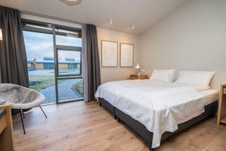 Die Kraft des Vulkans ist in Husafell allgegenwärtig und prägt die Landschaft mit skurrilen Silhouetten und Farbtönen, die keine Nuance auslassen. Es brodelt und dampft. Heilendes Wasser entspringt hier der Erde. Das preisgekrönte Hotel Husafell bietet Ihnen in dieser dramatischen Landschaft einen exklusiven Rückzugsort, um Lavafelder, Wasserfälle und Eishöhlen zu erkunden: Das Island-Abenteuer Ihres Lebens wartet auf Sie! Das Haus begrüßt Sie im gemütlich modernen Stil. Sie logieren in individuell eingerichteten Zimmern, die mit Gemälden des weltbekannten Künstlers Páll Guðmundsson dekoriert sind. Bodentiefe Fenster geben den Blick auf die wild-romantische Landschaft frei. Unweit Ihres Domizils warten Islands Naturwunder auf Sie. Starten Sie mit dem Offroad-Wagen und entdecken Sie den Gletscher Langjökull, unter dem der größte Eistunnel der Welt liegt. Nach einem erlebnisreichen Ausflug entspannen Sie Körper und Seele bei einem Bad in den Hotsprings. Die Nacht ist im Sommer taghell. Die gegen Mitternacht untergehende Sonne taucht die Landschaft in ein unvergleichliches Licht, während Sie vor den riesigen Fensterfronten im Restaurant Platz nehmen. Lassen Sie sich von der hervorragenden isländischen Küche verwöhnen und genießen Sie Schellfischsuppe und Tempura-Langusten.