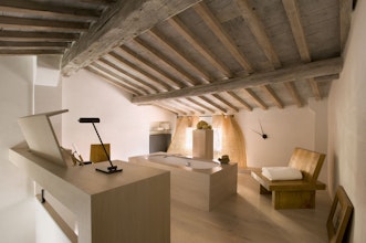 Il Palazzo ist ein kürzlich restauriertes Luxus-Apartment mit fünf Schlafzimmern im vierten Stock eines historischen Palazzo in Familienbesitz, im Herzen von Florenz. Die Räumlichkeiten wurden von einem international bekannten Innenarchitekten nach höchsten Standards in modischem, zeitgemäßen Stil eingerichtet. Il Palazzo ist einer der historischen Palazzi in Florenz. Es befindet sich direkt im Herzen von Florenz, nur wenige Schritte von der Piazza della Signoria, den Uffizien und der Ponte Vecchio entfernt. Die Ursprünge datieren aus dem 12. Jahrhundert, aber seine heutige Form stammt hauptsächlich aus einer Renovierung des Marchese Anton Maria Bartolo aus dem 17. Jahrhundert, die vom Architekten Ferdinando Tacca entworfen wurde, der auch den atemberaubenden Eingang signierte. Während des Zweiten Weltkriegs haben deutsche Truppen die gesamte Umgebung von Ponte Vecchio nahezu dem Erdboden gleich gemacht. Der Torre dei Girolami, einer der höchsten in Florenz verbliebenen Türme, der an den Palazzo angrenzt und zum selben Anwesen gehört, stürzte daraufhin ein und zerstörte die oberen Stockwerke. Diese Böden wurden unmittelbar nach dem Krieg unter Verwendung der Trümmer des Turms wieder aufgebaut. Für das hohe Wohnzimmer im obersten Stockwerk hat der Eigentümer alles original mit Trennwänden, Zwischendecken und Farbschichten restauriert, um die ursprüngliche Struktur aus Ziegeln und Säulen des Turms hervorzuheben. Vom Sofa aus haben Sie einen Blick von der Kirche Santo Stefano. Über die blühende Terrasse auf der gegenüberliegenden Seite können Sie den Turm des Palazzo Vecchio sehen. Zweifellos ist dieses Anwesen eines der stilvollsten und luxuriösesten Privathäuser im historischen Zentrum von Florenz. Die Gesamtgröße der 5-Zimmer-Wohnung beträgt 270 Quadratmeter. Sie betreten das Apartment auf Straßenniveau. Eine schöne Gewölbetreppe führt in die oberen Stockwerke. Wem dies zu viel Mühe ist: der Zugang zum 4. Stock ist auch über einen neu installierten, mit Spiegeln ausgekleideten Aufzug möglich. Auch eine private Garage mit Parkmöglichkeiten steht den Gästen zur Verfügung.