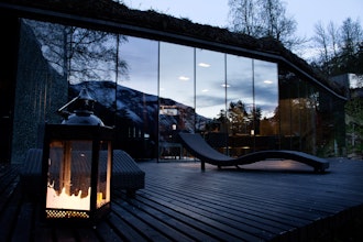 Umgeben von einer ausdrucksvollen Kulisse der Urgewalten empfängt das Juvet Landscape Hotel Sie im sattgrünen Tal des Flusses Valldøla auf dem Areal eines ehemaligen Bauerngehöfts. Felsblöcke, Kiefern, Birken und Espen schmücken das Grundstück. Ringsum erstrecken sich Westnorwegens kontrastreiche Landschaften mit ihren grandiosen Naturschauspielen. Sie logieren im Herzen Fjordnorwegens, geradezu versteckt in der lauschigen Bergschneise von Valldal und direkt am Ufer des munter sprudelnden Valldølas. Neun exklusive Domizile stehen hier für Sie zur Verfügung. Die kubischen Designunterkünfte bestechen mit stilvollem Interieur und verglasten Wohnbereichen. Beim Frühstück und Abendessen genießen Sie die authentische Atmosphäre des 100 Jahre alten Bauernhauses The Barn - meist zusammen mit dem Inhaber und seiner Familie. In dem historischen Gebäude finden Sie zudem die Rezeption, die Bücherei und das Hotelrestaurant, das Ihnen feine moderne und landestypische Kreationen serviert. Ein weiterer Wohlfühlort ist das Badehaus. Hier verwöhnen Sie Dampfsauna, Hot Tub und Ruheraum bei einmaligem Panoramablick ins friedliche Flusstal. Die Landschaft mit ihren felsigen Gipfeln, wilden Fjorden, Spiegelseen und tosenden Wasserfällen lädt zu allen erdenklichen Arten von Wintersport ein. In der Nähe erwarten Sie norwegische Must-sees wie der Geirangerfjord, die pittoreske Panorama-Serpentinenstraße Trollstigen und der Jostedalsbreen-Nationalpark mit dem gleichnamigen Gletscher.