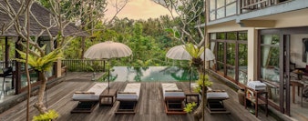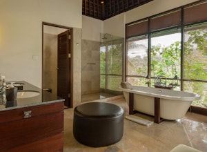 Ihr luxuriöses Domizil Komaneka at Bisma liegt an einem grün bewachsenen Hang, der zum Campuhan-Flusstal abfällt. Ein tropischer Wald und eigene Reisfelder umgeben die Villen Ihres Hotels. Profitieren Sie von der Lage: Obwohl Sie sich mitten in der Natur aufhalten, ist das Zentrum der Stadt Ubud nicht weit entfernt. Die Villen Ihres Refugiums punkten mit schlichter Eleganz, die sich aus hellen Farben und dunklen Holztönen zusammensetzt. Bodentiefe Fenster, edle Vorhänge und indirekte Beleuchtung sorgen für eine wohnliche Atmosphäre. Freistehende Badewannen aus Marmor und gemütliche Sofas sorgen für extravaganten Komfort. Ein Infinity-Pool im Schatten tropischer Pflanzen lädt zur Abkühlung ein. Machen Sie es sich anschließend auf den gepolsterten Liegen am Beckenrand bequem. Schon bald folgen Sie den Düften balinesischer Kochkünste ins Restaurant. Mit Blick auf die Reisfelder und modernen Kunstwerke im Inneren speisen Sie im Seneng Kitchen. Traditionelle Gerichte finden in zeitgenössischer Interpretation den Weg auf Ihren Teller. Der Reis stammt aus eigenem Anbau. Das milde Klima und der vulkanische Boden sorgen für einen unvergleichlichen Geschmack. Inmitten des tropischen Waldes und nur wenige Meter vom Flussufer entfernt, lockt das Spa Wana Jiwa. Finden Sie in diesem luxuriösen Zufluchtsort zu sich selbst und lassen Sie sich von hochwertigen Naturprodukten verwöhnen. Professionell ausgebildete Wellnesstherapeuten bieten Massagen, Schönheitsbehandlungen und Körperpeelings nach traditionellen Kräuterrezepturen an. Die Mitarbeiter des Komaneka at Bisma laden Sie dazu ein, die Umgebung des Resorts kennenzulernen. Brechen Sie nach dem Frühstück zum Spaziergang durch die Reisplantagen auf. Hierbei treffen Sie auf Bauern, die ihre Kühe füttern oder das Feld pflügen, - ein einmalig authentisches Erlebnis!