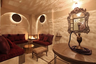 Mit nur sieben exklusiven, luxuriösen Refugien setzt das Boutique-Hotel Riad Joya voll und ganz auf Individualität. Sobald sich die Tür hinter Ihnen schließt, befinden Sie sich in einem einzigartigen Hide-Away inmitten der sonst so belebten Medina von Marrakech. Die besondere Atmosphäre lädt ein, sich für ein paar Tage ganz auf sich zu konzentrieren. Das Riad Joya in Marrakech ist etwas für den Gast, der Authentizität schätzt und gleichzeitig auf keinerlei Komfort und Luxus verzichten möchte - dieses Boutique-Hotel kombiniert die traditionellen Elemente Marokkos mit westlichem Style, um etwas Neues, vollkommen Ungewöhnliches zu schaffen, das außer Konkurrenz steht. Schlichte, präzise Eleganz ist hier vorherrschend: Das fast schon minimalistisches Interieur und die bestimmenden warmen Erdtöne werden in stimmungsvolle, wabernde Beleuchtung getaucht, für die Marokko so berühmt ist. Höchste Präzision ist Ihnen auch beim Service garantiert: Ihr Butler im Riad Joya ist rund um die Uhr darauf bedacht, Ihnen alle möglichen und unmöglichen Wünsche zu erfüllen. Besonders schätzen werden Sie dieses Detail, wenn Sie zu zweit nach orientalischer Romantik suchen. Dafür eignet sich zum Beispiel perfekt die Ottomane - Golden Seduction - Suite. Die majestätische Eleganz der Ottomanen wird hier mit Goldelementen und einem romantischen Kamin gebührend herausgestellt. Alle Zimmer folgen einem individuellen Motto, vom kolonialen Sansibar bis zum marokkanischen Kaufmann. Im hoteleigenen Restaurant trifft marokkanisches Feuer auf mediterranes Flair: Ein bisschen italienische Dolce Vita, eine Prise Laisser-faire aus Frankreich und reichlich Leidenschaft und Würze aus dem Maghreb gehen eine ganz neue Verbindung ein. Die Speisen reichen vom handgerührten Risotto bis zum Lammcouscous mit 27 verschiedenen Gewürzen. Diese bunte Mischung wird nur von edlen Zutaten getragen, die täglich frisch von Händlern des eigenen Vertrauens bezogen werden. Badetage im Hammam werden in der arabischen Welt traditionell zelebriert - das Riad Joya definiert dieses Ritual aber noch einmal neu. Echtes Arganöl, wie es nur in Marokko hergestellt wird, und wertvolle Tonerde sind dabei die Grundlage für die luxuriösen Ghassoul-Behandlungen. Bei diesen Treatments werden Körper und Geist ganzheitlich mit der Kraft organischer Produkte gereinigt.
