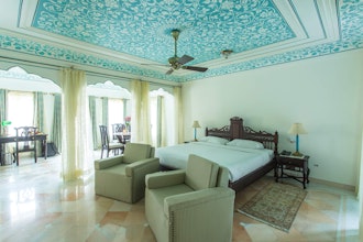 Jaipur gilt als ein Kulturzentrum des Landes und zeichnet sich durch einen Stadtkern aus, der von der UNESCO als Welterbe gelistet wurde. Das historische Zentrum überrascht mit rosa farben gestrichenen Häusern. Die "Pink City" entstand zu Ehren des britischen Prinzen Albert Eduard, der das indische Juwel besuchte. Erfahren auch Sie die besondere Gastfreundschaft von Jaipur und logieren Sie im exklusiven Royal Heritage Haveli, das von der Nichte des Maharajas geleitet wird! Aus einer Jagdresidenz aus dem 18. Jahrhundert entstand das einzigartige Hotel, das mit historischem Luxus betört. Betreten Sie durch das schwere Holztor den liebevoll angelegten Garten. An üppig grünen Hecken flanieren Sie unter Schatten spendenden Bäumen vorbei. Kunstvolle Wasserspiele und gemütliche Sitzgelegenheiten laden zum Verweilen unter der Sonne Indiens ein. Die Suiten Ihres Refugiums verfügen über private Terrassen und ein romantisches Schlafzimmer mit Gartenblick. I-Tüpfelchen der Wohneinheiten sind die luxuriösen Bäder mit kunstvollen indischen Fliesen, Regendusche und freistehender Wanne. Dank der modern eingerichteten Küchenzeile fühlen sich hier auch junge Familien wohl. Darf es ein wenig mehr Luxus sein? Dann beziehen Sie die feudal anmutenden Heritage Superior Suiten. Die kunstvolle Decke mit handgemalten Fresken sorgen bereits beim Eintreten für den Wow-Effekt. Indirekte Lichter tauchen die etwa 300m² große Suite samt luxuriösem Bett und Marmorfußboden in ein stimmungsvolles Ambiente. Der Gesang exotischer Vögel begleitet Ihr Frühstück im Kigelia Court. Das Restaurant unter freiem Himmel verwöhnt Sie zum Lunch und zum Dinner mit indischen sowie internationalen Köstlichkeiten. Am Abend treffen sich die Gäste in der extravaganten Bar Mehrab, um bei einem guten Drink kunstvoll drapierte, lukullische Kanapees zu schlemmen. Weitere Verwöhnmomente verspricht das Royal Heritage Haveli im Frangipani-Spa. Lassen Sie hier bei einer westlichen oder einer traditionellen indischen Massage die Seele baumeln. Zudem sind Sie dazu eingeladen, eine private Sitzung mit einem Arzt der Ayurveda-Heilkunst wahrzunehmen.