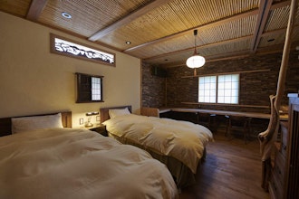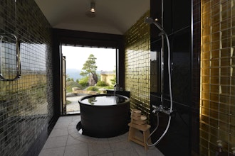 Es ist eine Zeitreise in die Vergangenheit: Ein wunderbar restauriertes Bauernhaus mit Strohdach und ein modernes Reetdachhaus empfangen Sie umgeben von einem historischen Garten. Ihr Domizil lässt längst vergessene Traditionen aufleben und ist eine Hommage an das Leben im Einklang mit der Natur. Sasayuri, die fein duftende japanische Lilie, steht als Sinnbild für die Erhaltung der Ursprünglichkeit inmitten der hektischen Welt - willkommen an einem Ort der Rückbesinnung und der Meditation. Sasyuri Ann lebt eine Philosophie des reduzierten Luxus. Die Einrichtung begrenzt sich auf Wesentliches, um einzelnen Elementen eine besondere Bedeutung beizumessen. Das Hauptzimmer ist groß. Groß genug, um den Gedanken Raum zu lassen und in meditativer Stille zu sich selbst zu finden. Die Sitzkissen in der Mitte laden dazu ein, um an der offenen Feuerstelle, dem sogenannten Irori, Platz zu nehmen. Sie sind umgeben von edlen Hölzern und japanischer Kalligrafie an den Wänden. Durch die großen Fensterfronten blicken Sie in die nebelverhangenen Hügel. Die Gebäude wurden nach uralter Handwerkskunst errichtet. Entstanden ist ein Gesamtkunstwerk, das wahre Authentizität versprüht. Kochen Sie selbst nach traditioneller Art am offenen Feuer oder lassen Sie sich von dem preisgekrönten Restaurant ein delikates Menü servieren. 48 Wasserfälle stürzen sich bei Akame in die Tiefe. Das Rauschen des Wassers und die Schönheit der Natur versetzen den Besucher in meditative Trance. Eine heilige Stätte der Buddhisten und Schauplatz der Ausbildung der japanischen Ninja-Kämpfer und Shugendo-Priester liegt vor Ihnen. Spüren Sie die mystische Kraft, die von diesem friedlichen Ort ausgeht, und gelangen Sie bei einem Bad in der heißen Quelle des Akame Onsen zu tiefer Besinnung. Mit ein wenig Glück begegnen Sie in den umliegenden Gewässern einem der seltenen Riesensalamander, die in Japan unter besonderem Schutz stehen.