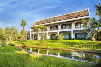 Am Ufer des Ping-Flusses liegt das exklusive The Marndadee. Unweit der thailändischen Großstadt Chiang Mai finden Sie hier zu Ihrer inneren Ruhe. Hohe Palmen und knorrige Laubbäume umgeben Ihr Domizil. In den hauseigenen Reisplantagen spiegelt sich die traditionelle Verbundenheit des Hotels wider. Lassen Sie sich im The Marndadee auf die exklusivste Weise verwöhnen und erleben Sie Luxus pur in Thailand! Ihr Refugium The Marndadee bietet Ihnen mit seiner romantisch-abgeschiedenen Lage am Fluss nicht nur erholsame Momente mitten in der Natur, sondern auch viel Privatsphäre. Das Hotel richtet sich nach der Philosophie, die Liebe zur Mutter Erde auszudrücken, was Sie während Ihres Aufenthalts spüren werden: Nehmen Sie sich Zeit, setzen Sie sich ans Flussufer, schauen Sie den hiesigen Fischern zu und genießen Sie einfach den Moment selbst. Jedes Zimmer im The Marndadee ist einzigartig: Möbel und Dekoration sind Antiquitäten aus all er Welt. Betten aus Indien, Schränke aus Birma und Sofas aus Deutschland erzeugen eine unvergleichliche Atmosphäre. Fragen Sie die bestens geschulten Mitarbeiter und erfahren Sie, welches Stück Zeitgeschichte Ihr Lieblingsmöbel im The Marndadee erzählt. Holz und thailändische Kunst dominieren die Villen, die mit Kingsize-Betten und luxuriösen Badewannen ausgestattet sind. Von der Terrasse aus blicken Sie entweder in den mit Hingabe angelegten Reisfeld-Garten oder auf das ruhige Flussufer. Auf das Werk des Künstlers Thongchai Sirsukprasert treffen Sie in den Kolonial-Suiten. Kostbare Teppiche, antike Türen und federweiche Himmelbetten führen Sie in die Zeit von König Rama V., der Sirsukprasert zu der Einrichtung inspirierte. Das ausgewogene Wellness-Programm komplettiert das ganzheitliche Konzept im The Marndadee. Die exklusiven Anwendungen konzentrieren sich auf Ihren Verstand, Ihren Körper und Ihre Seele gleichermaßen. Schließen Sie sich einem Yoga- oder einem Meditationskurs an oder powern Sie sich beim traditionellen Muay-Thai-Boxen aus. Bei einer Massage oder einem geführten Morgenspaziergang bringen Sie Körper und Geist in Einklang.