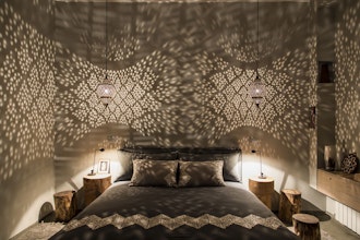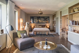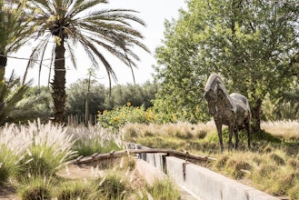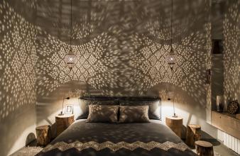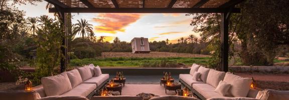 Die Villa Dar El Sadaka fügt sich mit ihren bunten Keramikterrassen, ihrem Mimosenhof und ihrer schönen, von Kletterpflanzen bewachsenen Fassade auf exotische Art in die Landschaft ein. Die Natur bahnt sich dabei ihren Weg nach innen. Schelmische Orang-Utans erklimmen die imposanten Korblüster, die wie moderne Dschungelkletterer von den hohen Decken des Wohnzimmers hängen. Über dem Design-Esszimmer thront eine riesige Giraffe. Jedes Zimmer trägt den Namen des Tieres, das es symbolisiert, wie ein Totem. In der Suite "Camel" fühlt man sich beispielsweise wie ein verlorener Tuareg im Herzen der Wüste und in der Suite "Giraffe" befindet man sich inmitten der Savanne unter dem afrikanischen Sternenhimmel. Der Privatbesitz von Jean-François Fourtou ist ein einzigartiges künstlerisches Projekt: eine atemberaubende Welt aus extravaganten Werken wie dem "Haus der Riesen" oder dem "vom Himmel gefallenen Haus". Speisen Sie wie in der Geschichte von Tausendundeiner Nacht bei Kerzenschein im authentischen Caidal-Zelt. Auf dem langen Banketttisch, der von einer Spiegelkugel beleuchtet wird, wird eine Parade traditioneller marokkanischer Gerichte präsentiert, die mit Produkten aus dem Garten und mit der originellen Note des Privatkochs zubereitet werden. Bevor Sie schlafen gehen, klettern Sie mit einem Astronomen auf die Dachterrasse, der die Geheimnisse der Sterne und Konstellationen für Sie enthüllt.