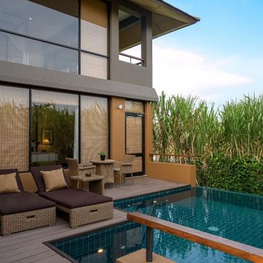 zum HotelPrivate Villen mit Pool inmitten grüner Reisfelder, stiller Seen und tropischer Natur