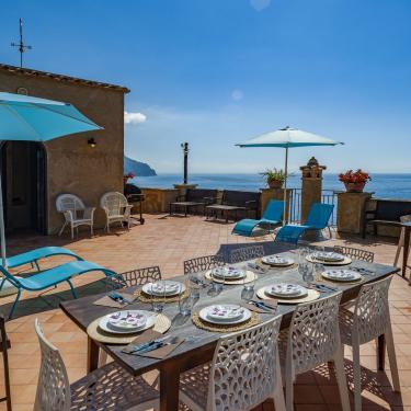 Rustikal und zugleich modern eingerichtete Villa mit direktem Meerzugang